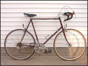 handle bar tape. The frame is maroon, made of Reynolds 531, and it measures