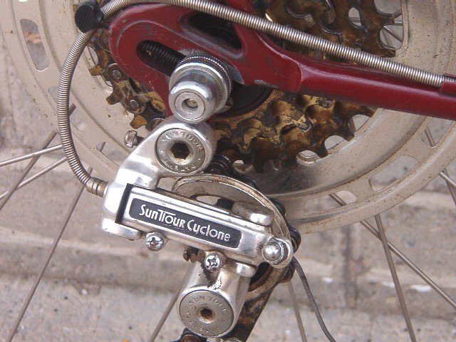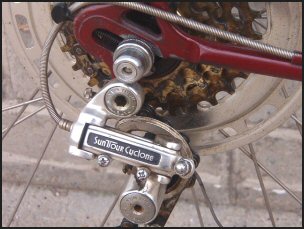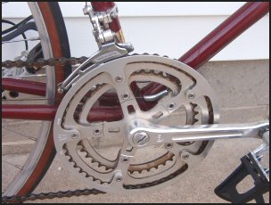 crank; Suntour Cyclone derailleur; Araya 27x11/4 rims; Sunshine hubs;